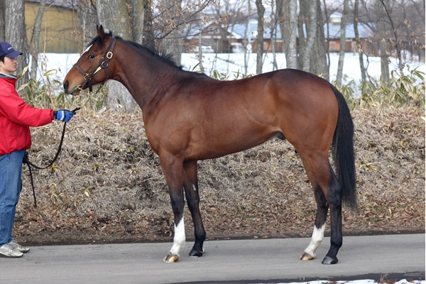 4日に栗東入厩。9日は調整程度。「今朝から本格的にゲート練習を始めました。順調で、今のところ問題はありません。今後は北海道に連れて行って、向こうで競馬をすることも考えています」(池江寿師)