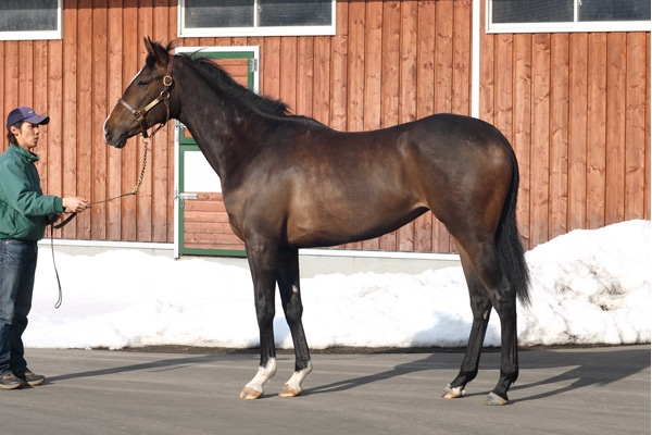 屋内周回コースでキャンター1600mの後、屋内坂路でハロン16秒のキャンター1本を行っています。クロフネ産駒らしいストライドの大きな伸びのある走りが目立つようになっており、馬自身が我慢することをだいぶ覚えてきたようで終いまでしっかりと走ることができるようになりました。体調も高い次元で推移していることから、近々ハロン15秒を切る速い調教を課す予定です。なお、本馬は4月に行われる第一回産地馬体検査を受検いたします。