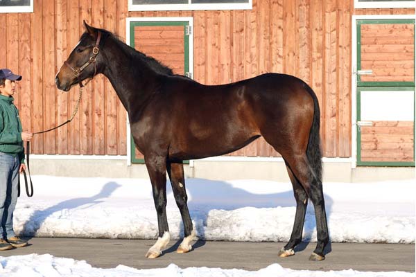屋内周回コースで軽めのキャンター1600mの後、屋内坂路でハロン19~20秒のキャンター1本を消化しています。見た目に背に伸びが出てきて、また立派な腹回りの馬ですが、太いと言うよりはいい意味で容積があると言った方が当てはまる感じです。冬場は大柄な体格を考慮し、じっくり乗り込んでいきます。