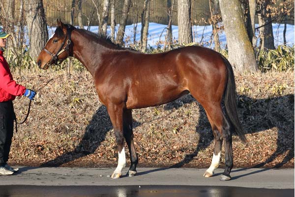 屋内坂路でハロン20秒のキャンター1本を行っています。この中間、寝違いから左首筋の軽い筋肉痛を起こし、左前脚に軽いハ行が見られましたが、暫くウォーキングマシンとしたことで、馬体に余裕はありますが、症状自体はすっかり消え失せています。調教再開直後は元気を持て余していましたが、今では落ち着きを取り戻し、首を上手く使ったリズミカルなキャンターを見せています。